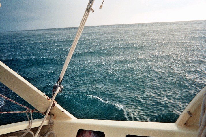 Next couple of days are sailed inside the reefs, fairly pleasant but all on the nose as we are headed East. Anchor off a nice island for the night. It rains hard that afternoon.